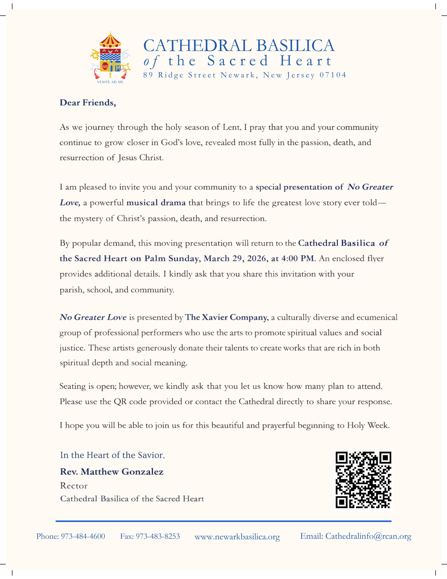 Inspired by the words of Christ — “No one has greater love than this, to lay down one’s life for one’s friends” (John 15:13) — No Greater Love is a reflective dramatic meditation on the Passion of the Lord.